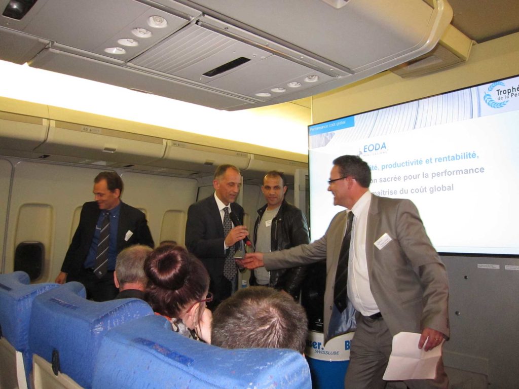 Invité d’honneur sur le salon Le groupe SAFRAN a bien joué le jeu avec ce moteur LEAP destiné aux A320 neo ou une turbine Turboméca tout juste lancée. Safran a d’ailleurs reçu un trophée lors de la soirée BLASER Swisslube au musée de l’air au Bourget. Cet événement se déroulait dans la cabine du 747…